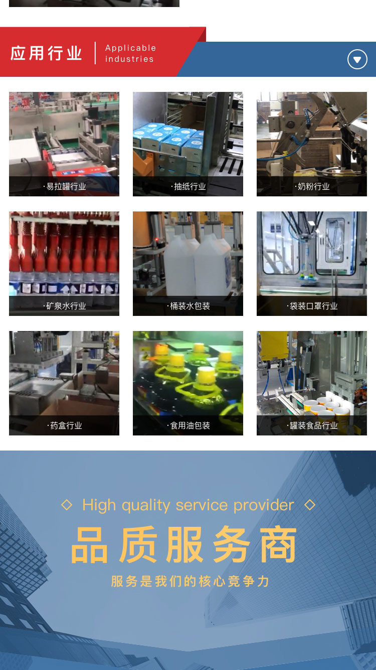 介紹:裝箱機(jī)是包裝機(jī)械的一種,有自動(dòng)箱盒機(jī)、裝箱機(jī)等. 自動(dòng)裝箱機(jī)是將藥瓶、藥板、藥膏等和說(shuō)明書自動(dòng)裝入折 疊紙盒中,并完成蓋盒動(dòng)作。大屏幕可視面板獨(dú)立式按鈕七寸彩屏界面,簡(jiǎn)單快捷,操作易懂單獨(dú)的按鈕設(shè)計(jì),操作更簡(jiǎn)單側(cè)推裝置結(jié)構(gòu)緊湊合理電器元件采用國(guó)內(nèi)品牌,性能穩(wěn)定將對(duì)疊好的抽紙推到箱子里。 專注后道包裝設(shè)備性能穩(wěn)定鑄就匠心品質(zhì),精工制造、支持訂制。 產(chǎn)品別稱:裝箱機(jī)、裝盒機(jī)、自動(dòng)裝箱機(jī)、自動(dòng)裝盒機(jī)、跌落式裝箱機(jī)、側(cè)推式裝箱機(jī)、抓舉式裝箱機(jī)、機(jī)器人裝箱機(jī)、一片式裹包機(jī)、藥盒裝箱。